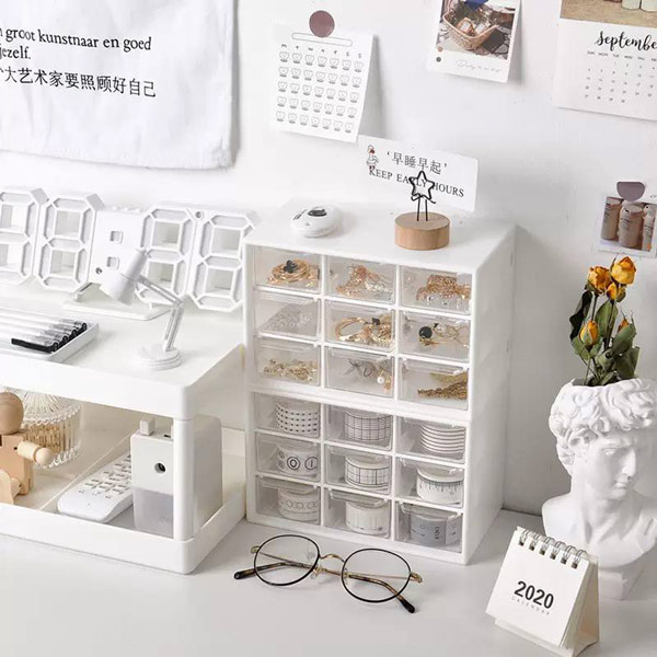 ارگانایزر رومیزی 9 کشو پینترستی هم قابل استفاده روی میز است و هم میتوانید آن را روی دیوار نصب کنید.