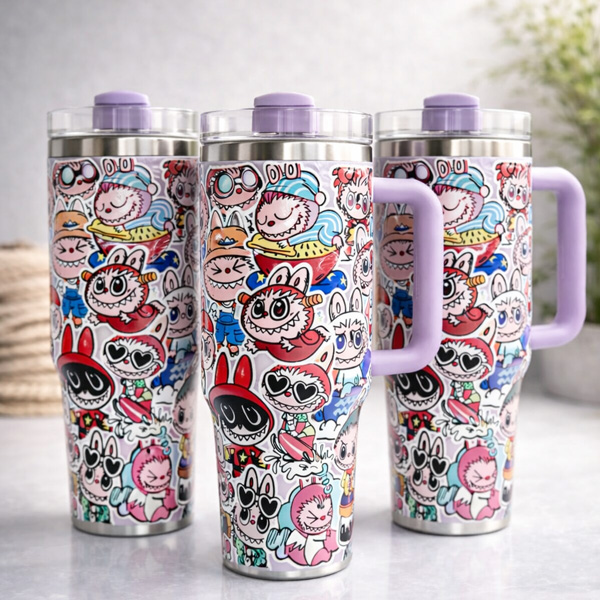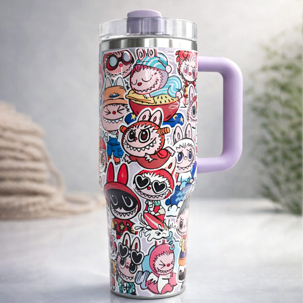 تامبلر دو حالته 1200 میلی لیتر درب شفاف طرح LABUBU