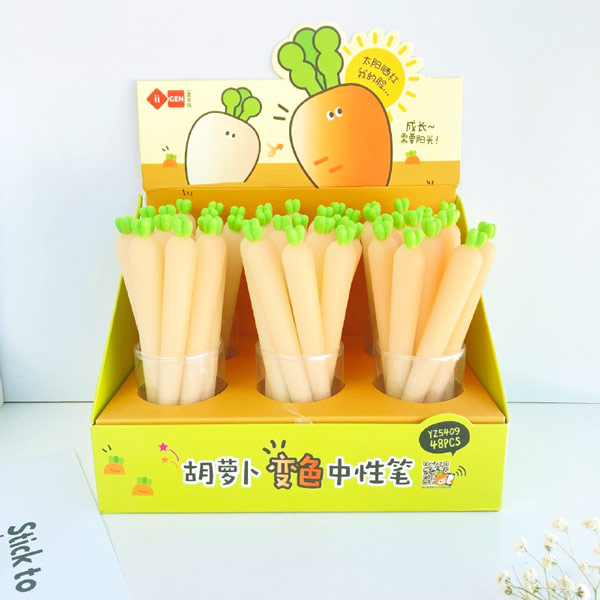 روان نویس فانتزی آفتابی طرح هویج در مقابل نور خورشید تغییر رنگ میدهد و بدنه آن از سفید به نارنجی تبدیل میشود.