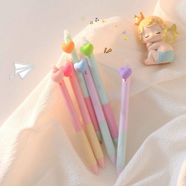 روان نویس کلیکی جوهر پاک شونده طرح قلب برجسته با 6 رنگ متفاوت