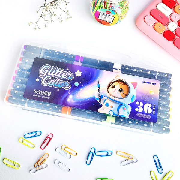 ست ماژیک شاینی 36 رنگ طرح GLITTER همراه با کیف پلاستیکی دکمه دار