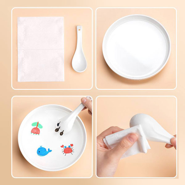 برای استفاده در مرحله اول، طرح مورد نظر را با ماژیک مخصوص روی پشت قاشق بکشید. سپس قاشق را بهآرامی داخل یک کاسه پر از آب با دمای ولرم قرار دهید تا طرح بهصورت شناور روی سطح آب ظاهر شود.