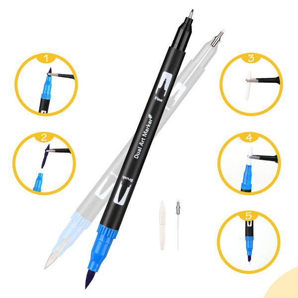 این ست شامل ماژیک‌ و روانویس‌ دو سر است (یک سر ماژیک و سر دیگر روانویس). داخل بسته‌بندی مدل 60 رنگ دو سری ماژیک و دو سری روانویس یدک نیز قرار دارد که باعث افزایش طول عمر و صرفه‌جویی در هزینه می‌شود.