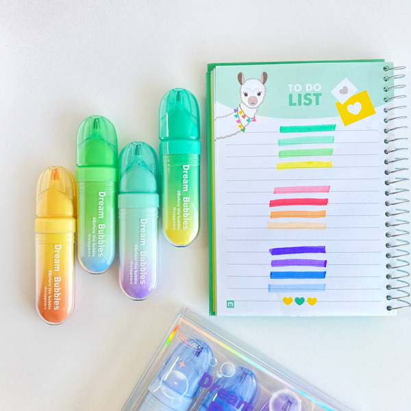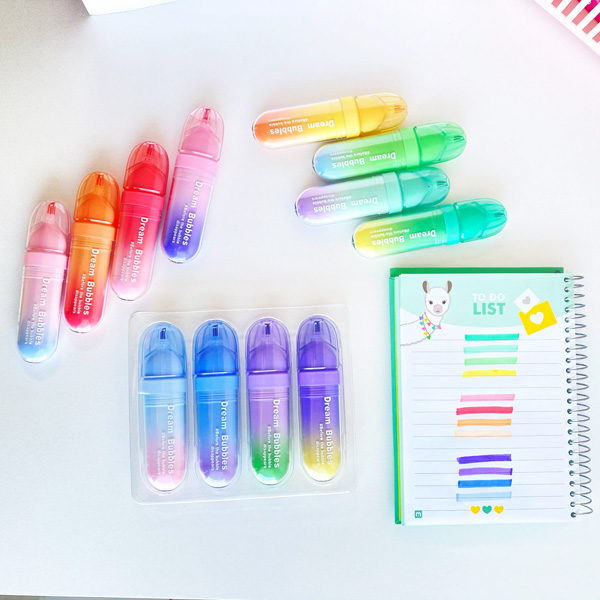 هایلایتر 4 رنگ DREAM BUBBLES با طراحی خوشدست، انتخابی عالی برای دانشآموزان، دانشجویان و کارمندان است.