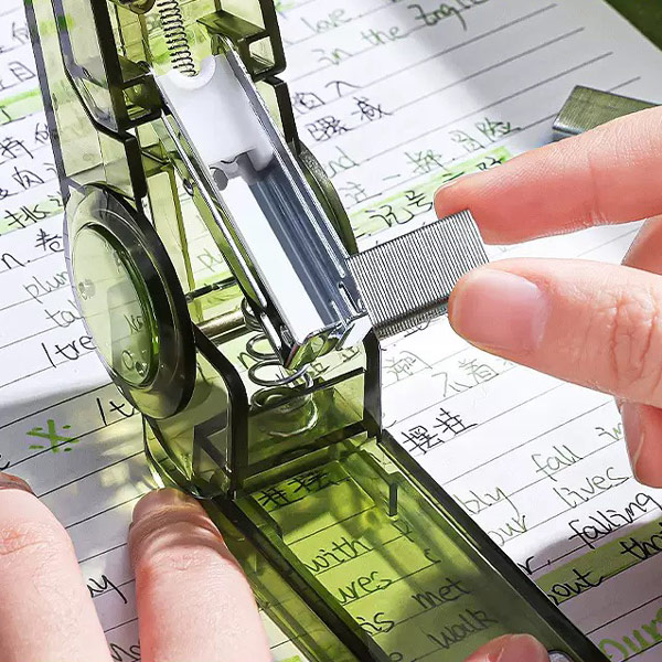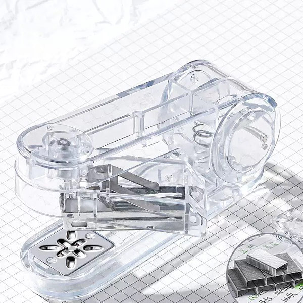منگنه چرخشی 360درجه طرح شفاف همراه با یک بسته 400 عددی سوزن ارسال میشود.