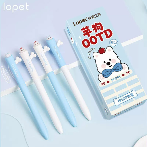 پک 4 عددی روان نویس کلیکی 0.5 LOPET طرح PUPPY و PANDA با 2 طرح متفاوت و بدنه سبک نوشتن را راحت تر می‌کند.